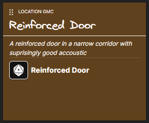 - The door is a Fair (+2) Reinforced Door, and there’s an added (+2) Fair difficulty to open it silently.